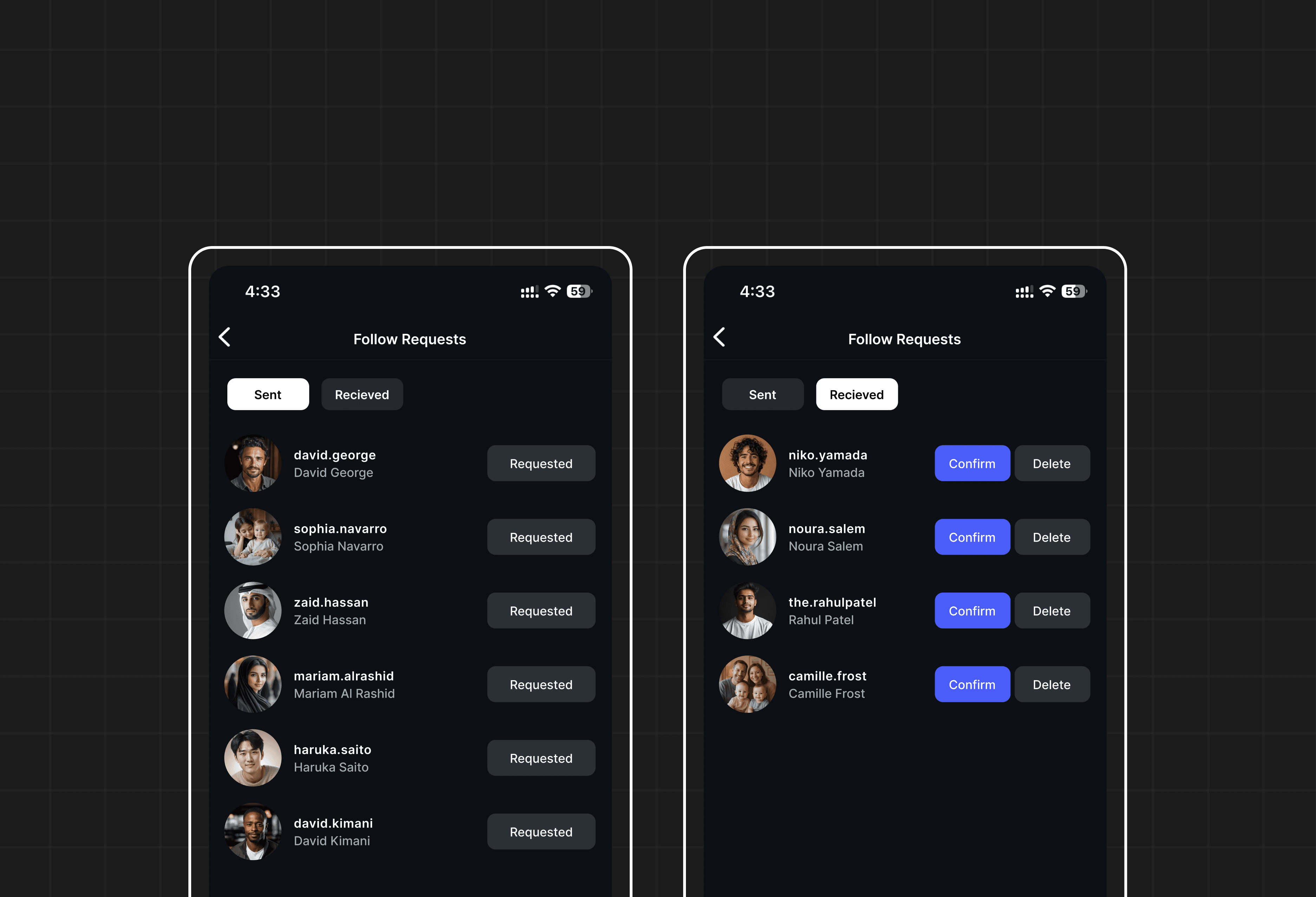 Makes pending follow requests visible and manageable within the app